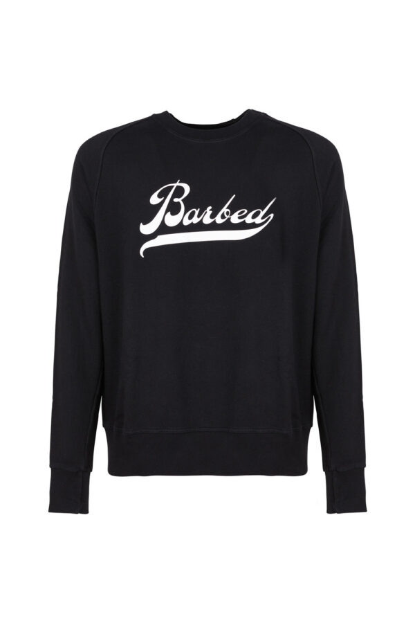 Sweatshirt Raglan with long sleeves. Fabric 100% cotton, colour black. Printed white Barbed logo on the front. Unisex.