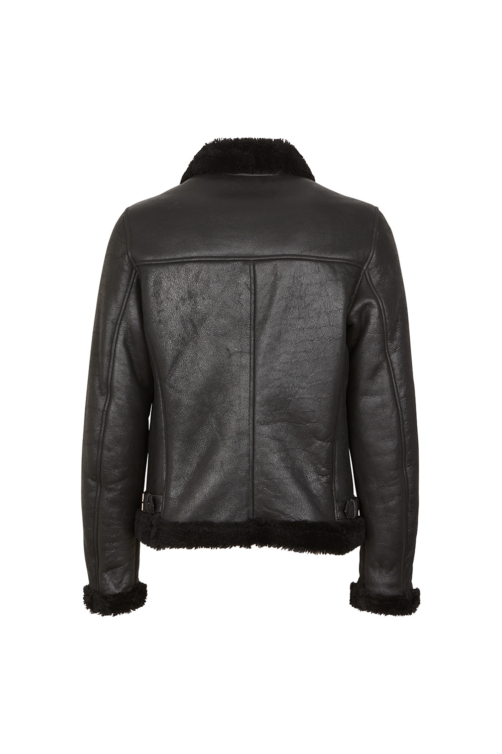 Giacca shearling, modello B3. Tessuto guscio e interno 100% shearling nero. Manica lunga e 2 tasche frontali. Chiusura capo con zip.
